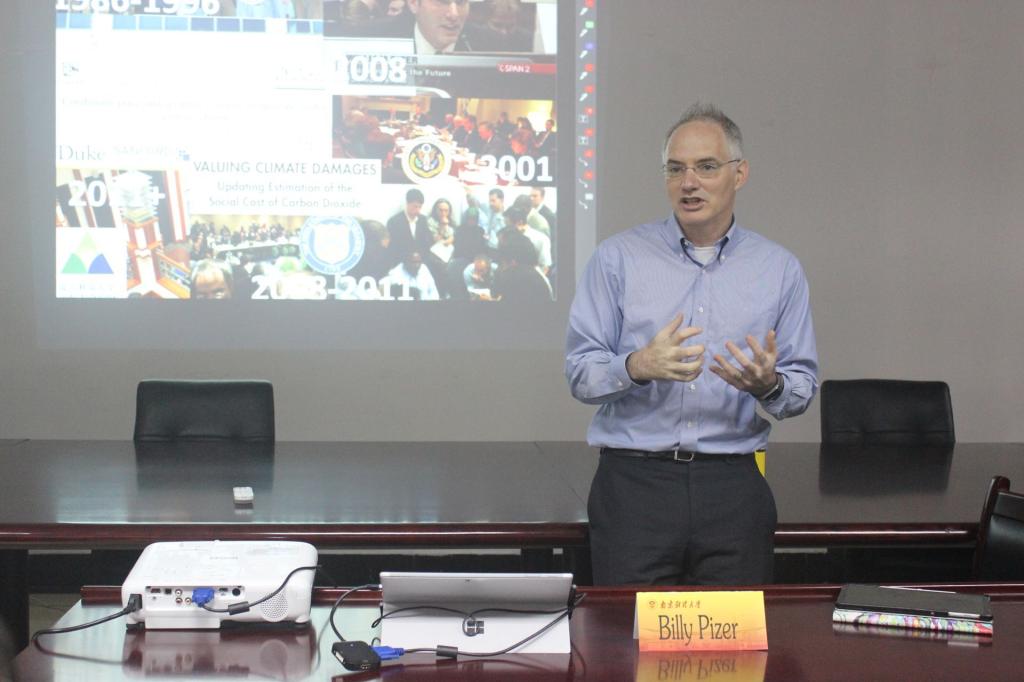 3月20日下午,应我院邀请,杜克大学公共政策学院副院长Billy Pizer教授在德经楼307室作了题为“碳交易市场价格机制研究”(“Price limits in a tradable performance standard”)的学术报告,昆山杜克大学环境政策项目协调员仇雪老师、我院部分师生聆听了报告,报告由经济系周元春老师主持。