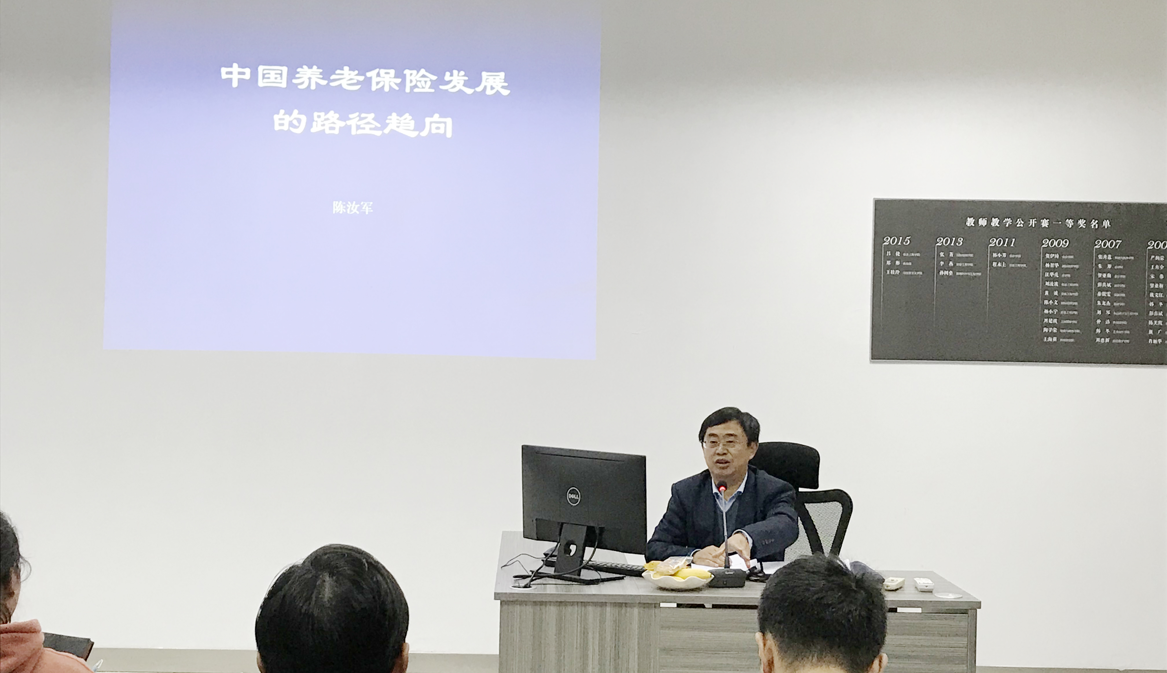 参会同学就目前我国实现养老保险制度、养老保险等问题向陈处长提问,陈汝军处长一一耐心予以解答,并认为养老保险要完善个人账户,是否意味着要实行名义账户制?他介绍了目前在企业职工养老保险改革的趋向上,由两种意见,有的学者主张要调整养老保险的制度结构,还有要的坚持仅仅进行参数改革,希望有兴趣的同学可以深入关注,加以研究。