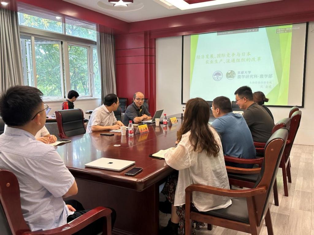 2023年9月22日上午,应我院邀请,日本京都大学沈金虎教授在我校仙林校区德经楼329会议室作题为“经济发展、国际竞争与日本农业生产、流通组织的改革”学术报告。报告由副院长刘小峰教授主持,我院部分教师和研究生参与此次学术活动。