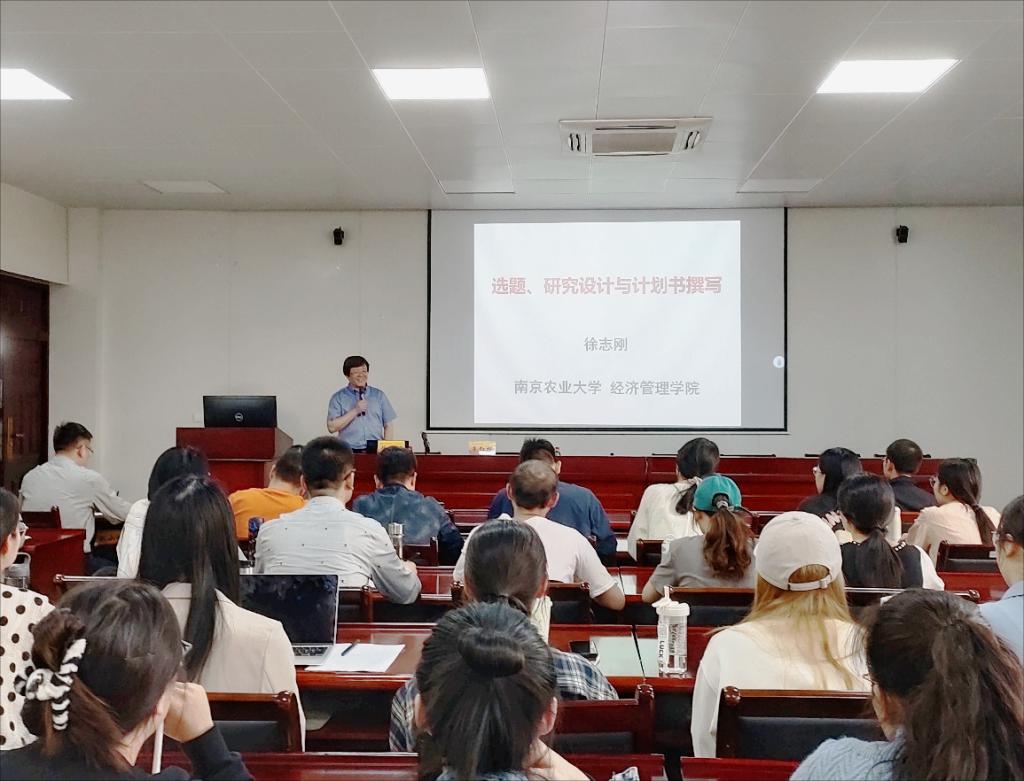 11月2日下午,应bat365在线登录网站注册赠送36邀请,南京农业大学经济管理学院院长徐志刚教授在仙林校区德经楼307会议室作了题为“选题、研究设计与计划书撰写”的学术讲座。讲座由我院院长朱红根教授主持,bat365在线登录网站注册赠送36部分教师、博士生、研究生参加了此次讲座。