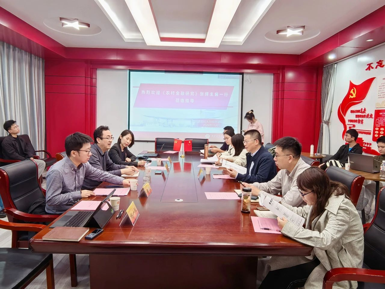 11月15日下午,德经楼329会议室,《农村金融研究》杂志社拜访bat365在线登录网站注册赠送36,共同探讨学术研究与期刊发展。bat365在线登录网站注册赠送36党委书记张圣兵主持会议,bat365在线登录网站注册赠送36院长助理陈杰,部分师生代表参加座谈。