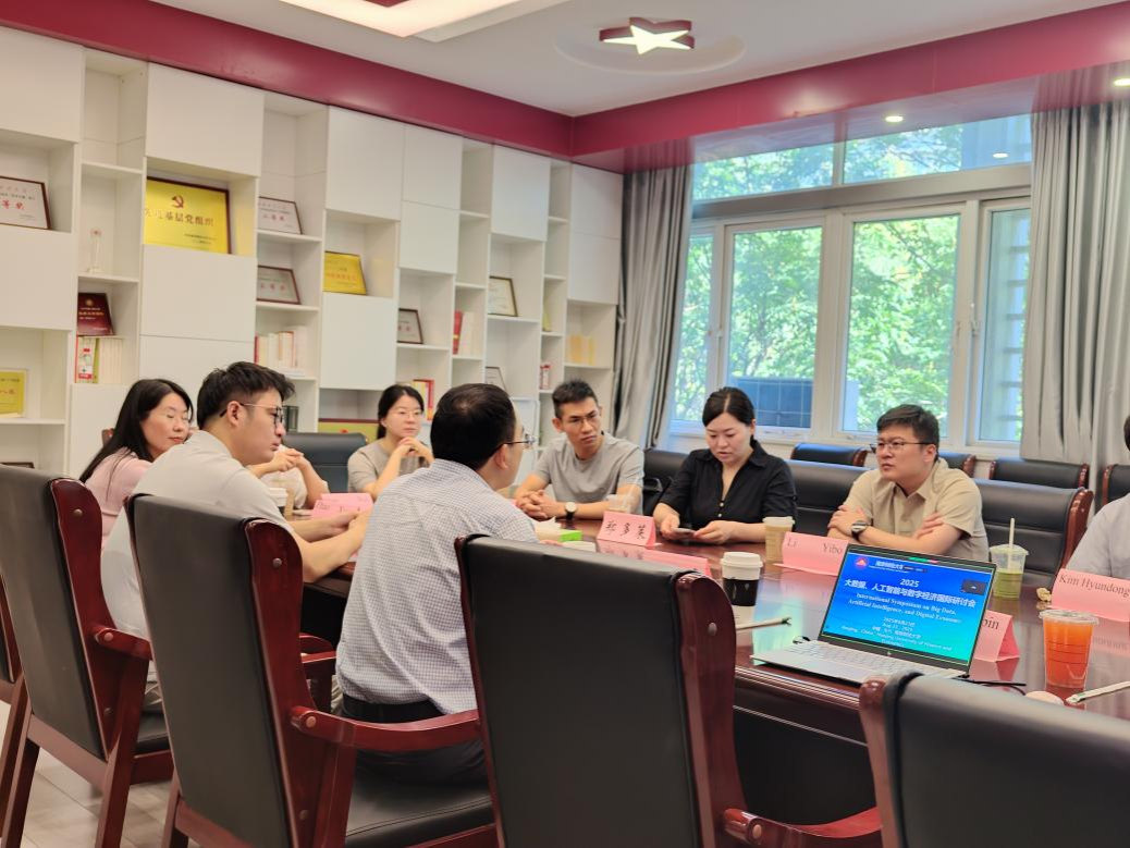 2025年8月23日上午,由bat365在线登录网站注册赠送36主办的“大数据、人工智能与数字经济国际研讨会”在德经楼329会议室成功召开。会议聚焦大数据与人工智能在数字经济中的前沿应用,吸引了来自中韩两国多所高校的专家学者参与,围绕相关学术议题展开了深入交流,并就数字经济与统计学科的融合发展进行了合作探讨。会议首次采用AI同声传译软件在线翻译,实现中韩语无障碍交流。